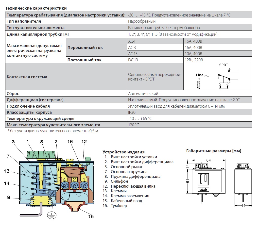 • Термостат Danfoss KP61, с капиллярной трубкой 6м