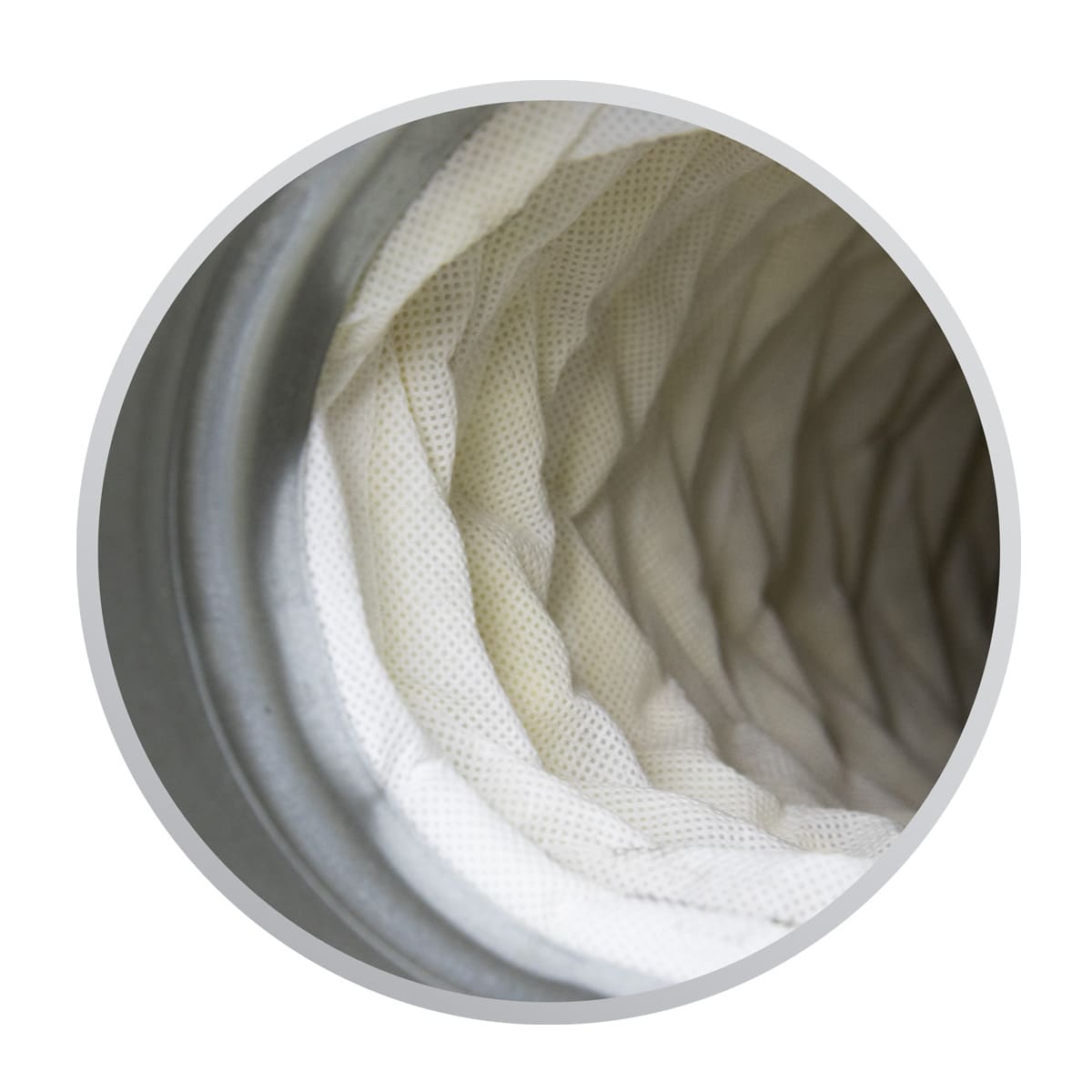 Внешний диаметр CONNECTDEC меньше, чем у классических металлических круглых шумоглушителей. Это облегчает монтаж и обслуживание в ограниченном пространстве в фальшпотолке или зоне установки вентиляционного оборудования, сохраняет объем помещения.