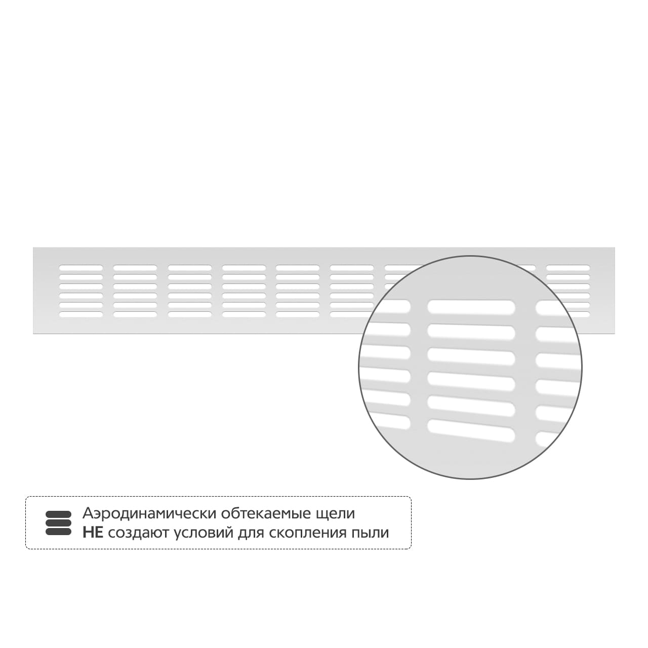 • Аэродинамически обтекаемые щели не создают условий для скопления пыли