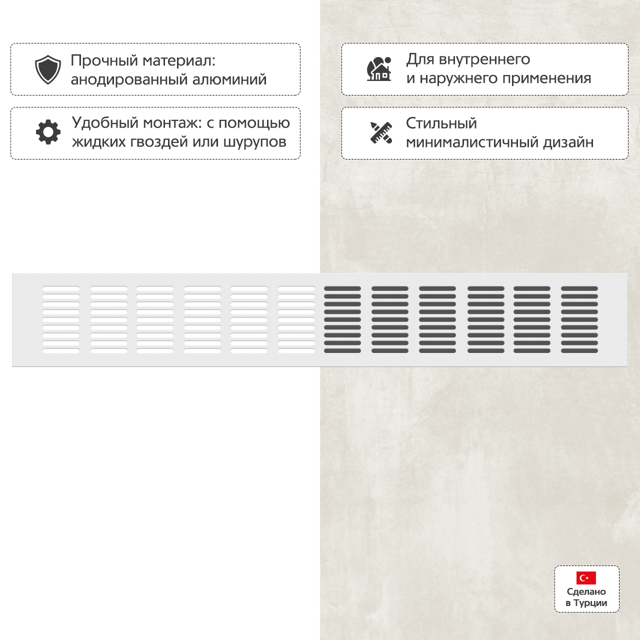 Идеально при монтаже в подоконники для правильного распределения воздуха от центрального отопления, обшивки радиаторов, дверей, мебели.