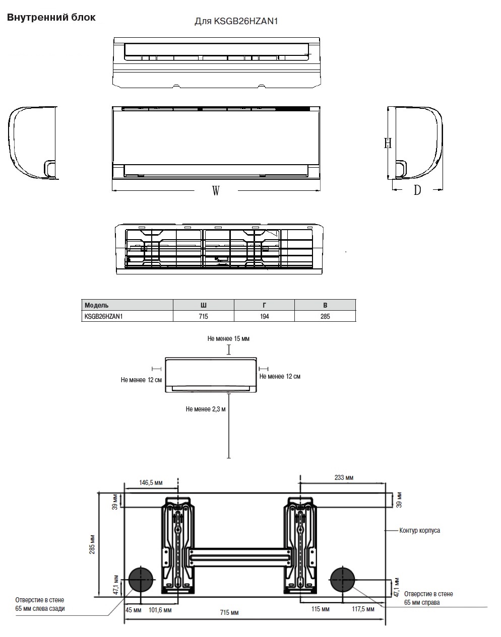 Размер внутреннего блока (ШxВxГ), мм